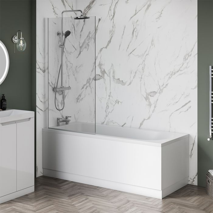 Aqua i 6mm Silver Square Shower Bath Screen 1400mm x 800mm