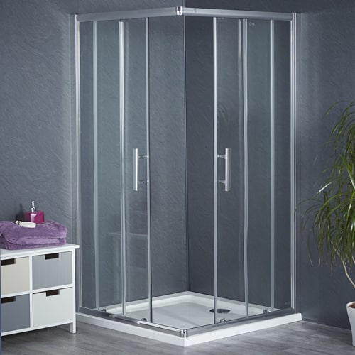 Two easy glide sliding doors create an opening on the corner of the enclosure. A perfect choice for maximising space as the doors do not open outwards.