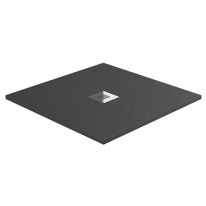 Aqua I Urban Slate Effect Square Shower Tray & Waste 760mm x 760mm - Charcoal Grey