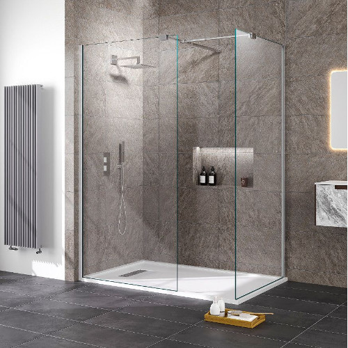 2000mm high wetroom panels designed to suit any space with its flexible configurations. Choose from 8mm or 10mm glass thickness and a stunning selection of finishes. The variety of support bar / arm styles, combined with optional fixed or flipper deflector panels, allow for additional design possibilities.
