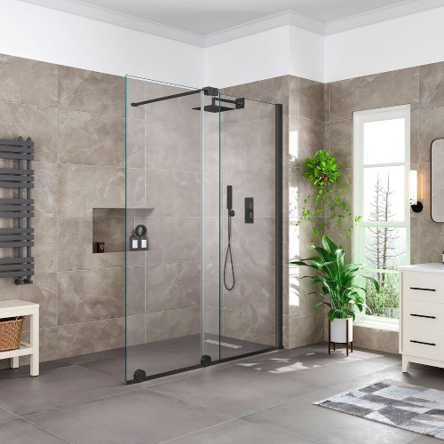 Sliding wetroom panels create the illusion of a shower enclosure being installed within a wetroom space. The smooth sliding mechanism of the Aqua i Glide panel is designed for ease of use and space efficiency, as well as offering a minimalistic design with bottom only rollers.