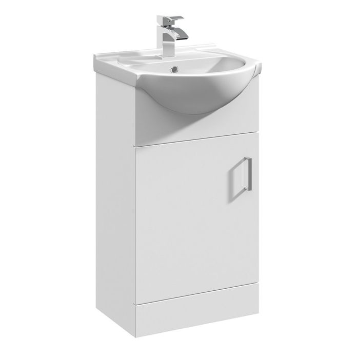 Gloss White 1 Door Floor Standing 450mm Cabinet And Basin