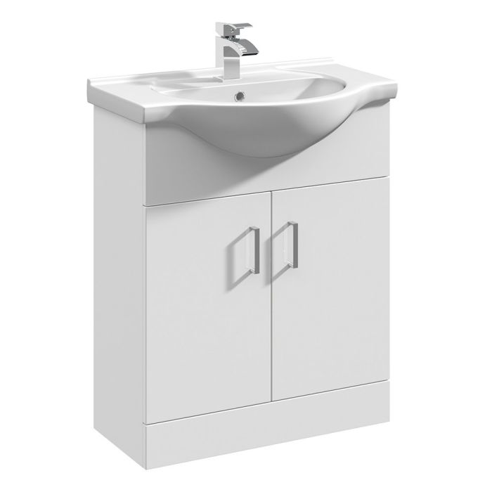Gloss White 2 Door Floor Standing 650mm Cabinet And Basin