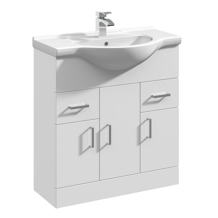 Gloss White 3 Door & 2 Drawer Floor Standing 750mm Cabinet And Basin